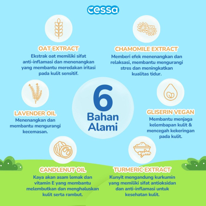 Rasakan sensasi mandi BARU yang menenangkan dan relaxing dengan aromaterapi Essential Oil Alami Cessa setiap hari. Terinspirasi oleh kebaikan alam, menjadikan momen mandi bersama Si Kecil terasa hangat dan menyenangkan.