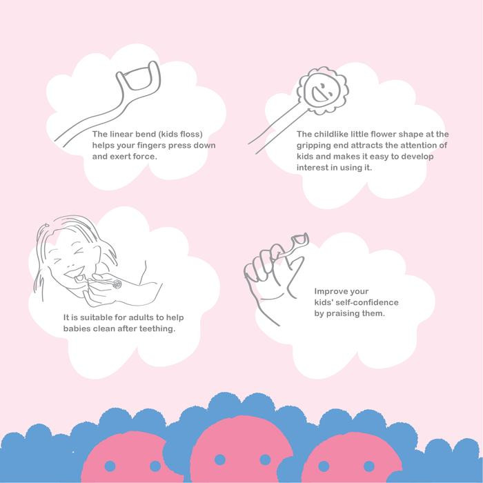 Floss terbuat dari bahan PTFE yang mudah membersihkan sela-sela gigi dan tidak mudah rusak dan terurai. Handle nyaman dipegang dan mudah digunakan untuk membersihkan gigi bagian belakang