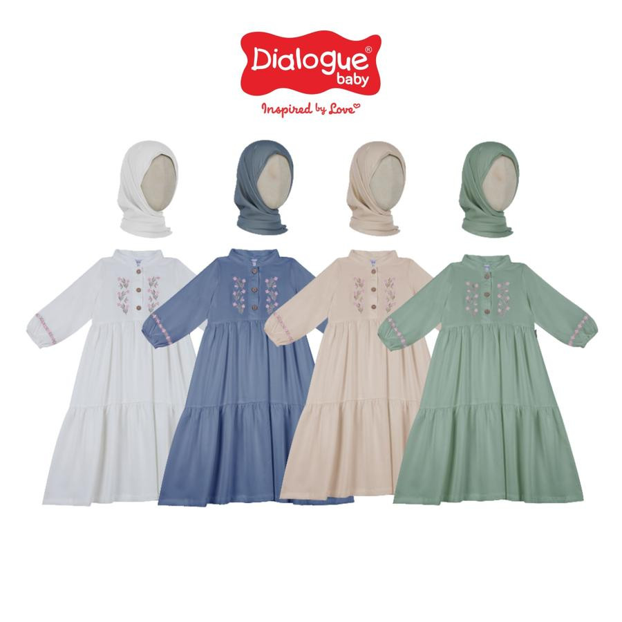 - Desain berupa gamis dengan tambahan kerudung dengan aksen bordir motif.