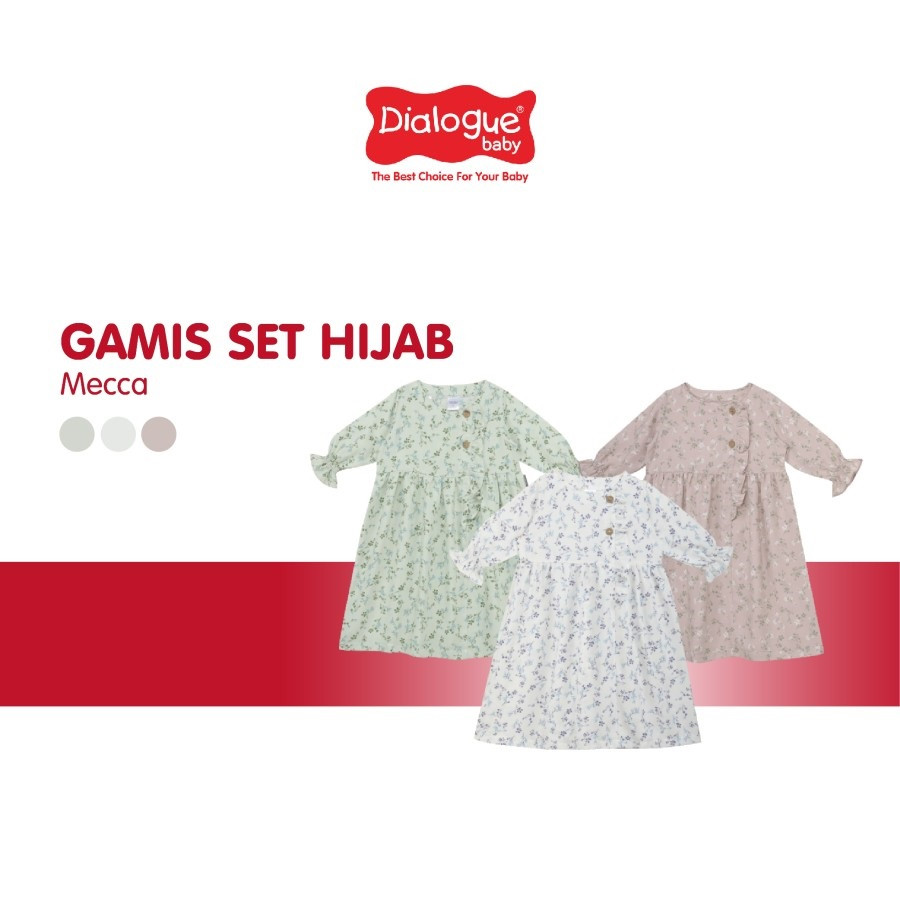 - Desain berupa gamis motif bunga dengan tambahan kerudung.