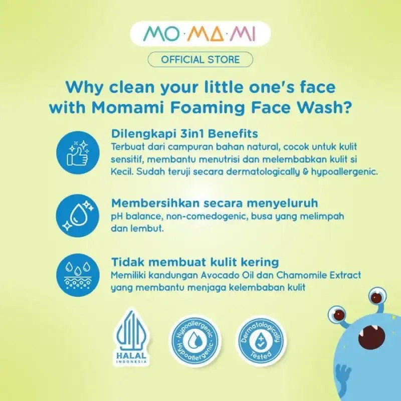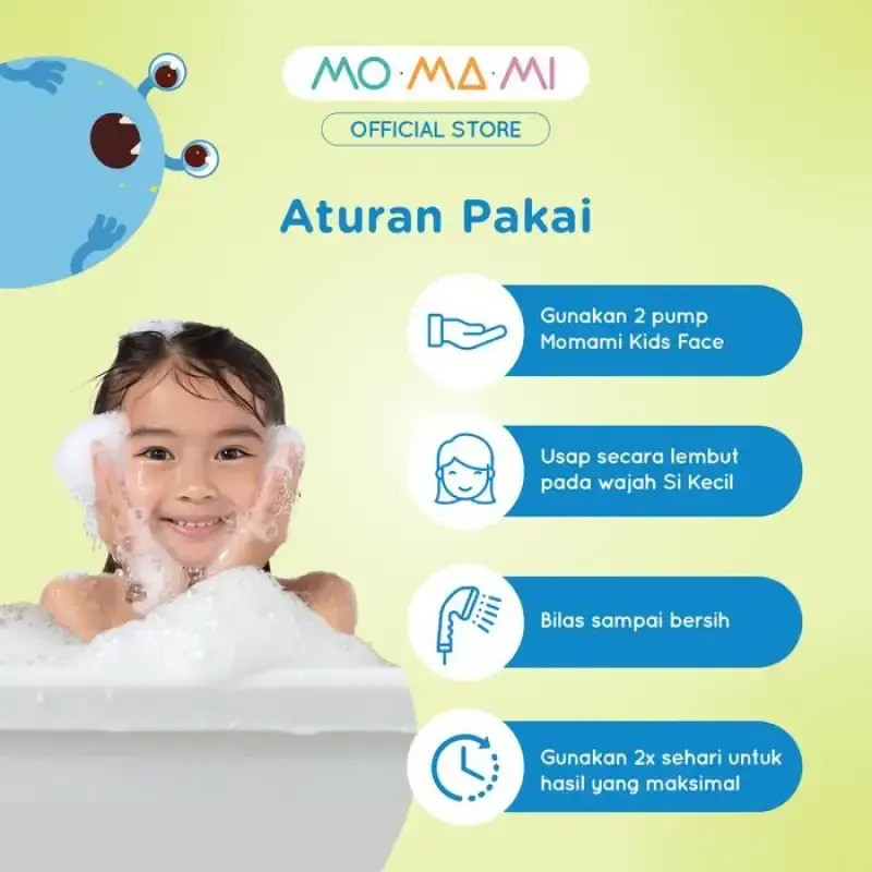 MO.MA.MI Kids Foaming Face Wash diformulasikan secara khusus untuk kulit wajah anak, membersihkan secara lembut dari kotoran dan kuman pada wajah tanpa membuat wajah kering.