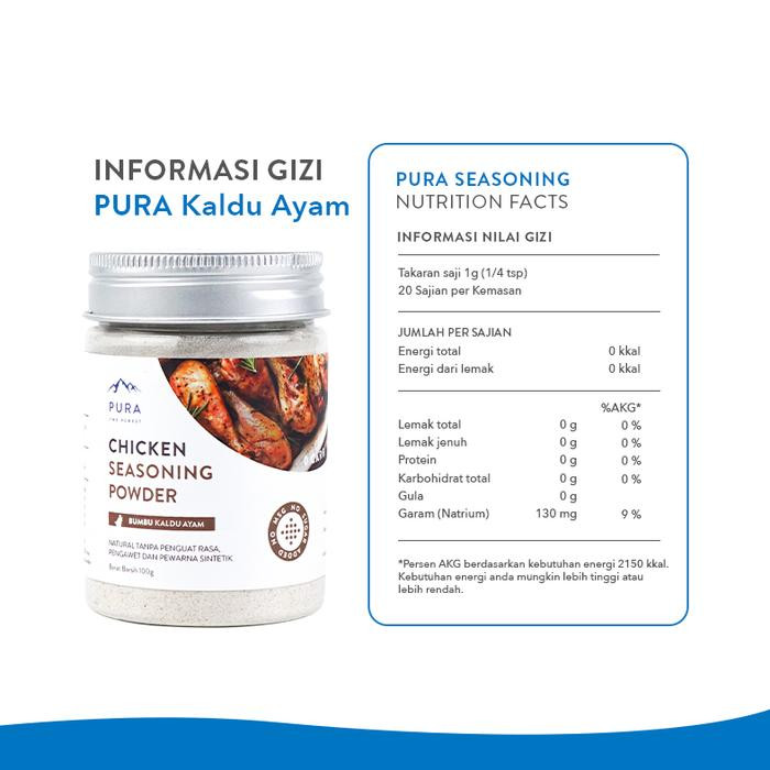 Chicken powder (Ayam kampung), Pura Sea Salt, Bawang Putih, Bawang Bombay, Lada dan Pala.