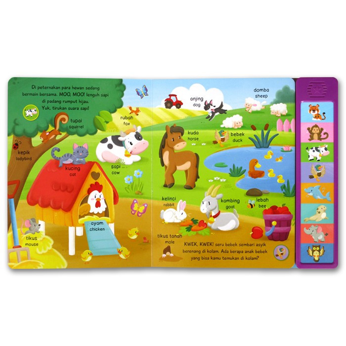 Gambar-gambar hewan nya super cute dan warna-warni ceria banget, pasti si kecil sukaaa deh liat2in gambar2nya sambil seruuu pencet2in tombol suaranyaa 😍