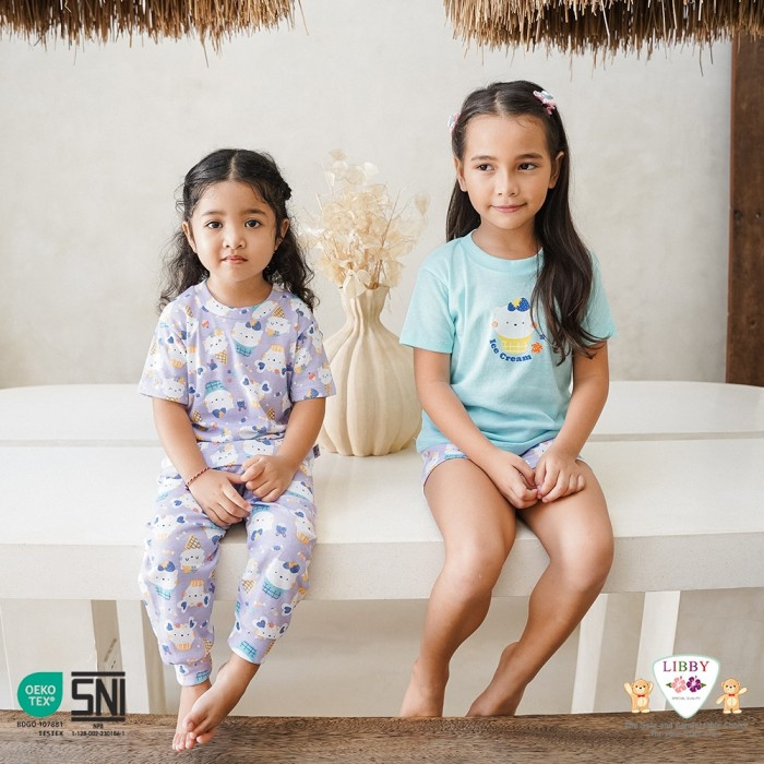 LIBBY Setelan Oblong Cotton Rib Pendek - Celana Panjang Series Girl Motif Giggles Groove