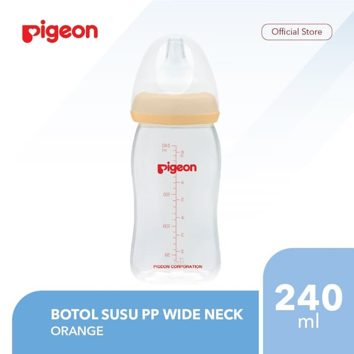 Botol BPA Free dengan desain lebar berukuran 240 ml yang terbuat dari bahan PP (Polypropylene) yang tahan suhu sterilisasi hingga 110C dan tinta food contact grade sehingga sesuai digunakan untuk bayi. Botol dengan screw warna Ivory ini dilengkapi dengan SofTouch P-Plus Nipple berbahan karet silikon lembut dan elastis yang tahan suhu sterilisasi sampai 120Celsius berukuran M