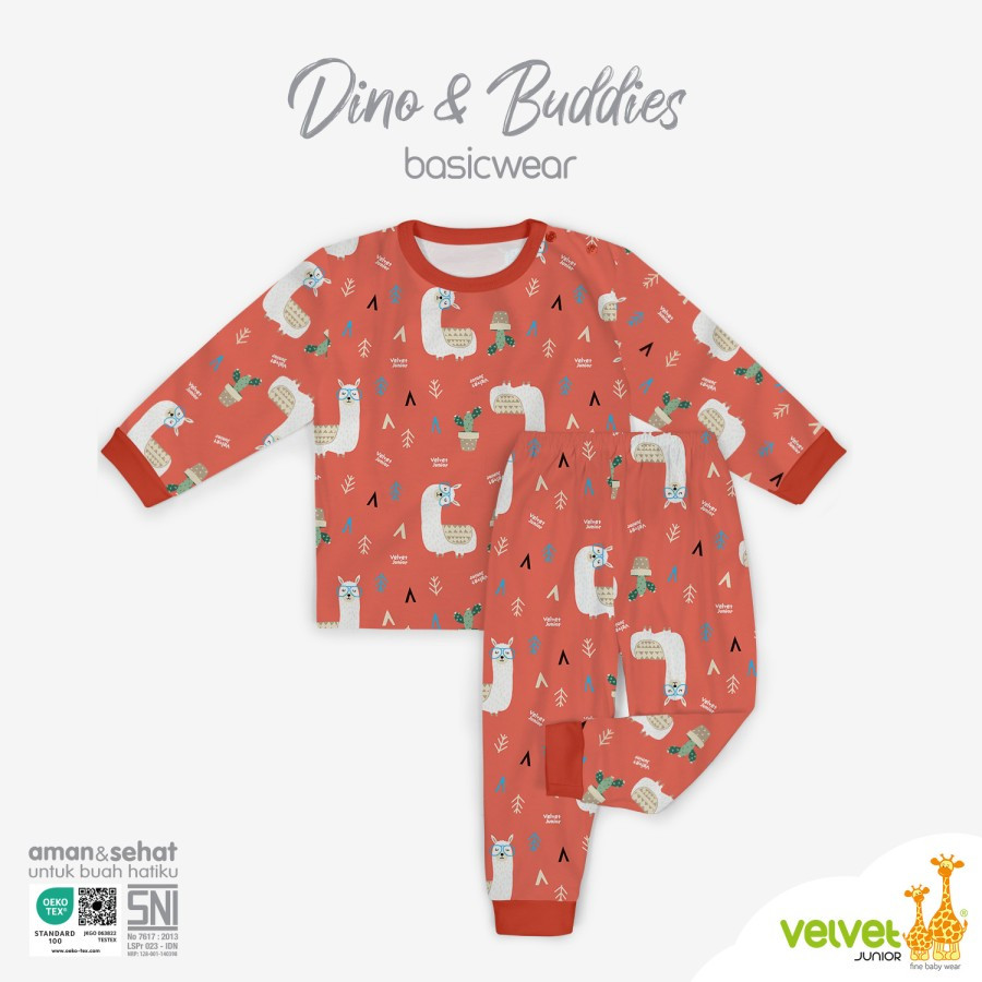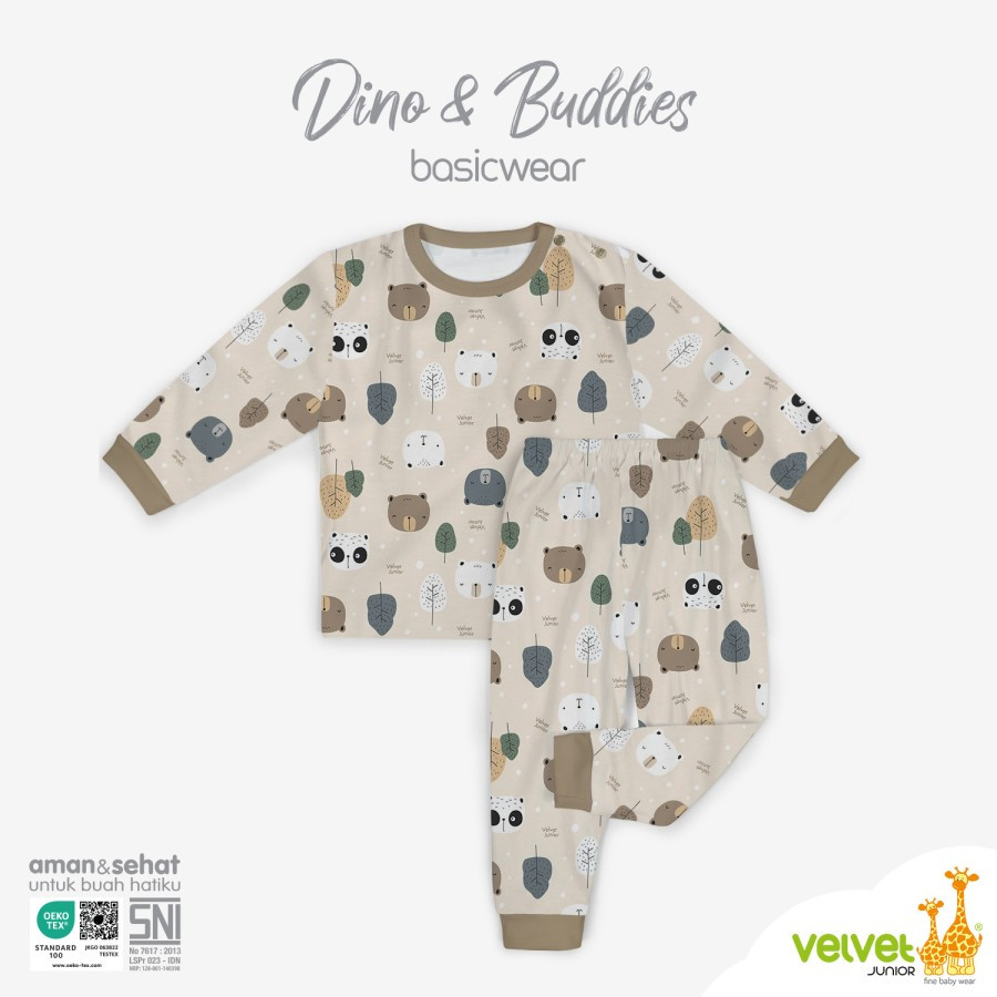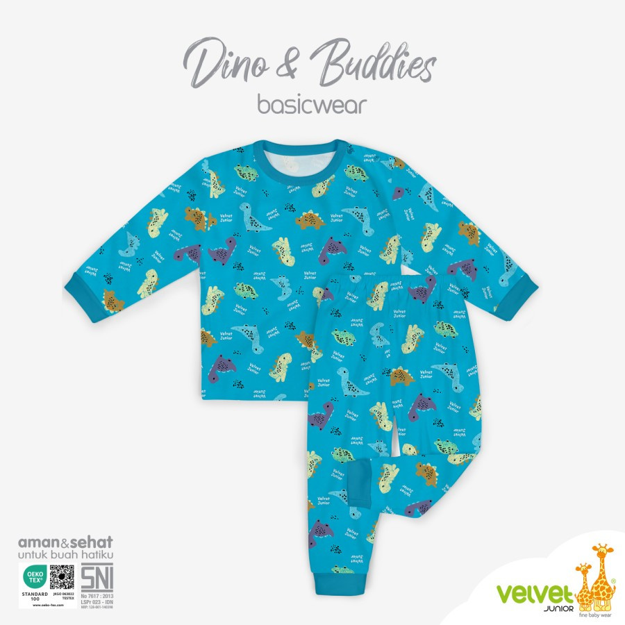 Setelan Baju Anak Kancing Pundak Panjang Celana Panjang BasicWear seri Dino & Buddies Series. Baju tidur yang nyaman dengan model baju lengan panjang kancing pundak dan celana panjang, untuk nyamannya tidur nyenyak dan serunya petualangan mimpi si buah hati. Hadir dalam kombinasi warna dan motif yang lucu dan seru, yang akan membuat si Kecil tetap tampil menarik dan siap menikmati petualangan mimpi yang indah.
