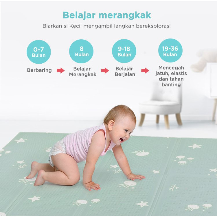 Desain permukaan anti-slip dan bertekstur, menjadikannya tidak licin serta membantu melatih perkembangan motorik bayi