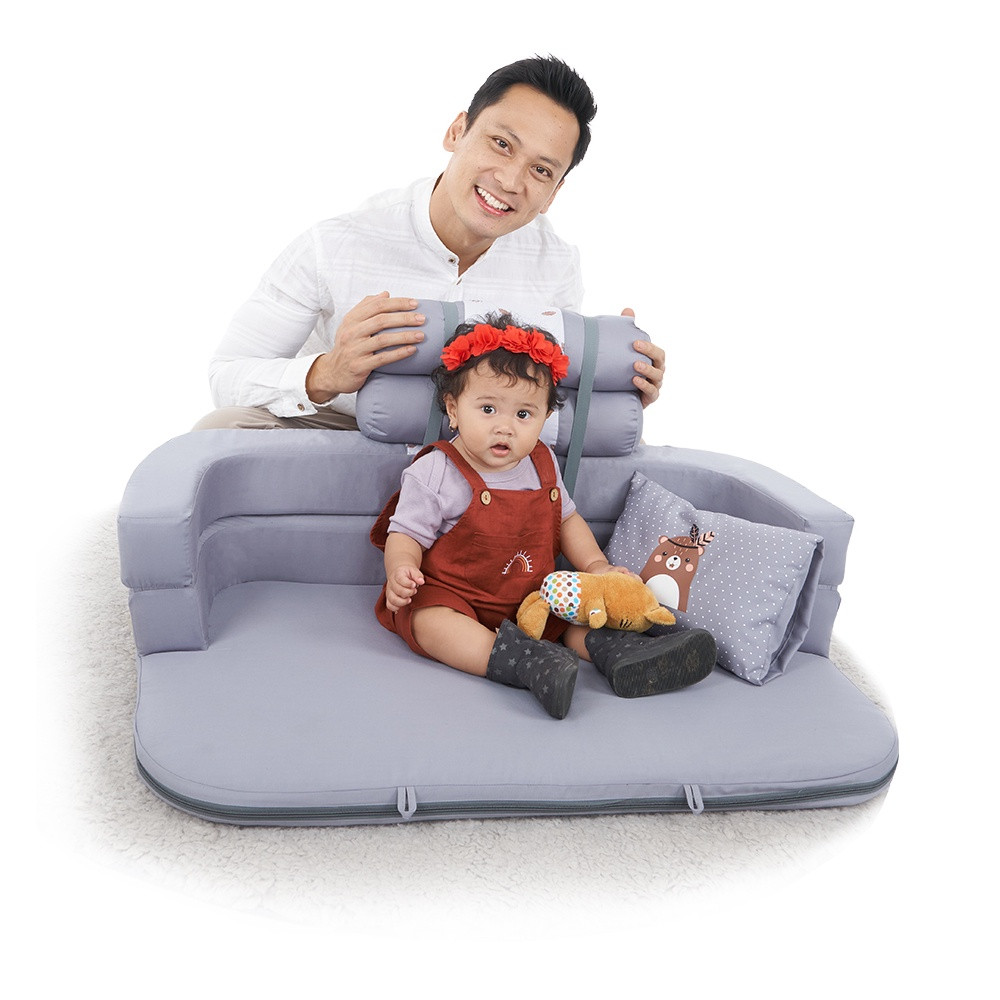 - Kasur ini juga dapat digunakan sebagai sofa saat bayi sudah bisa duduk dengan
