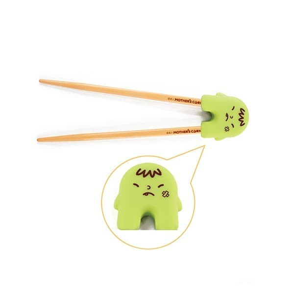 Sumpit makan untuk balita terbuat dari bahan serat jangung dilengkapi silicone unik berbentuk lucu yang digunakan sebagai penjepit untuk membantu menyumpit makanan