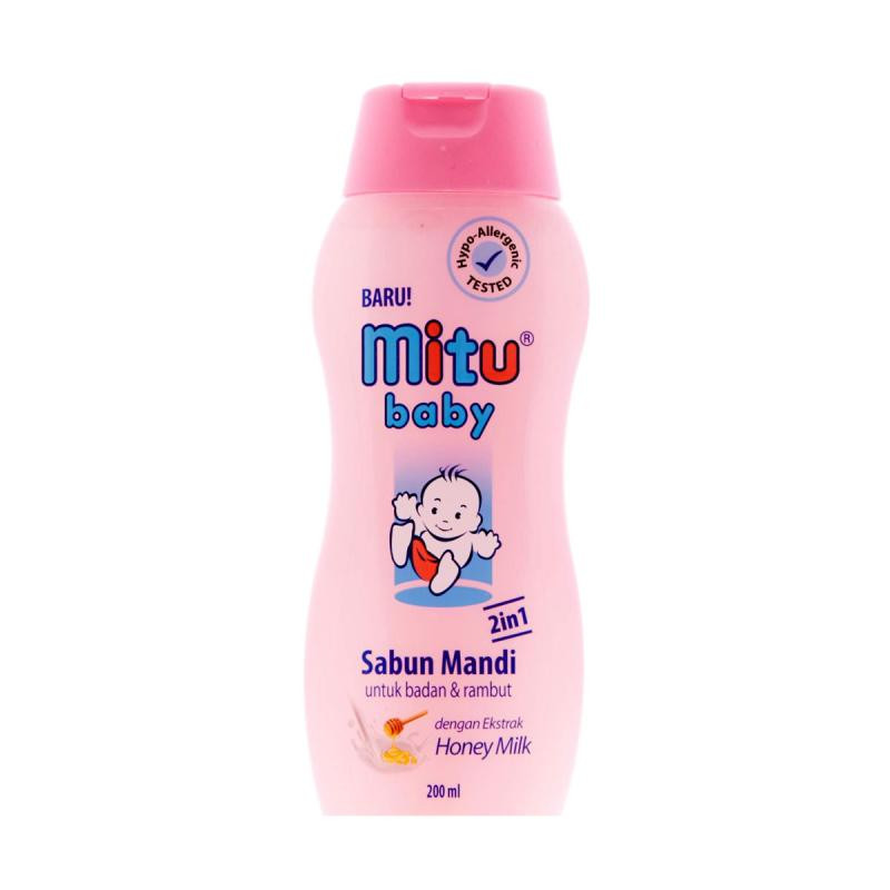 Mitu Baby Sabun Mandi 2in1 Botol 200Ml merupakan produk sabun cair perlengkapan mandi bayi yang dibuat dengan formula khusus mengandung ekstrak Honey Milk yang menjadikan sabun jauh lebih lembut dari sabun mandi biasa. Produk sabun mandi Mitu Baby ini berguna untuk membersihkan dan merawat rambut dan kulit bayi agar tetap halus dan lembut serta menjaga kelembaban rambut dan kulit bayi