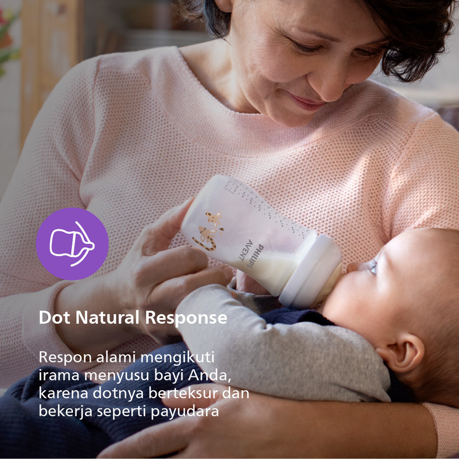 Philips Avent Natural Response Baby Bottle SCY903/66 adalah solusi sempurna untuk mendukung ritme minum bayi yang unik. Puting Natural Response melepaskan susu hanya saat bayi minum dengan aktif. Bayi dapat minum, menelan, dan bernapas sesuai dengan ritme alaminya, mirip seperti saat menyusui. Dengan ini, memudahkan Anda untuk menggabungkan pemberian ASI dan susu formula. Dengan desainnya yang inovatif, botol ini memberikan kenyamanan dan kebebasan pada bayi untuk mengikuti irama minum mereka sendiri. Buat pengalaman makan bayi menjadi lebih nyaman dan alami dengan Philips Avent Natural Response Baby Bottle.