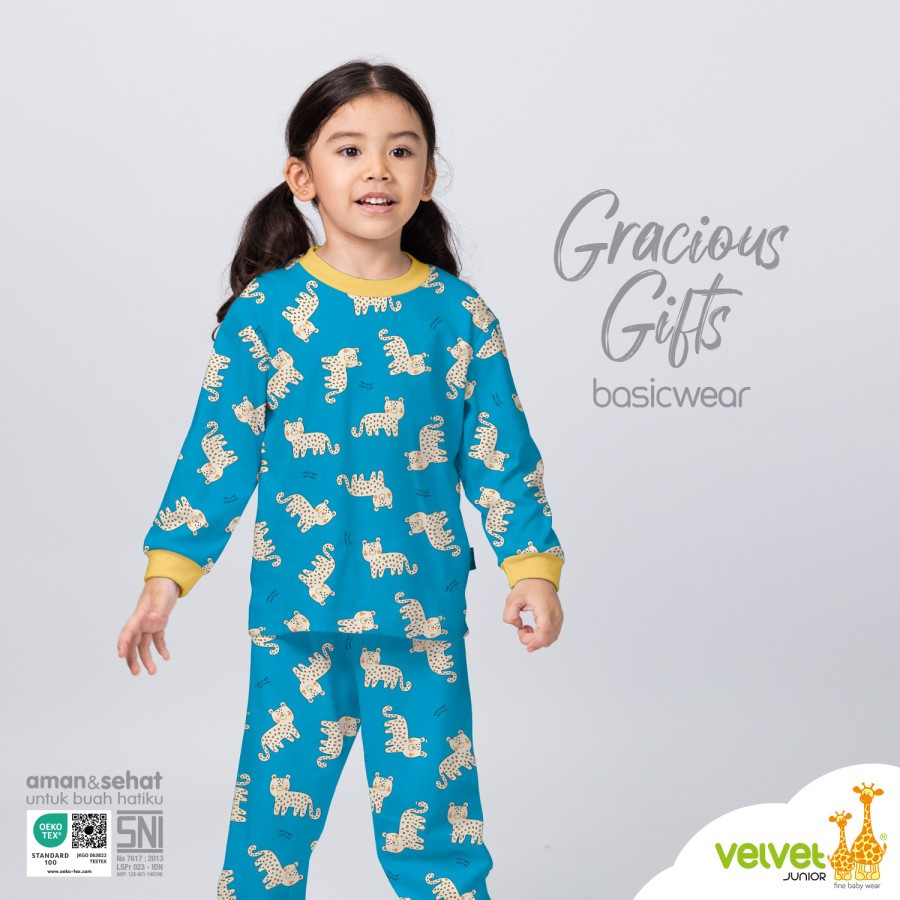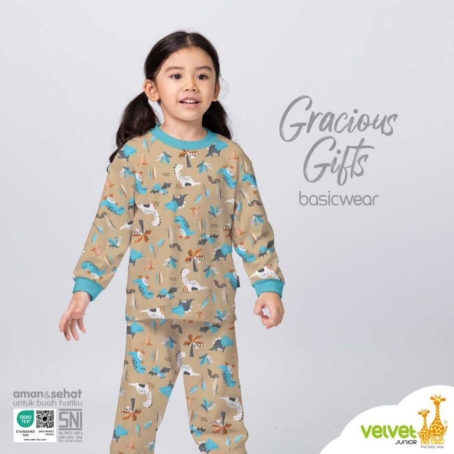Setelan Piyama BasicWear Velvet Junior dengan model baju lengan panjang dan celana panjang hadir untuk si Buah Hati menemani tidur malamnya yang lelap. Warna dan motifnya yang seru membuat si Kecil tampil menarik dan siap menjelajahi mimpinya yang penuh petualangan!
