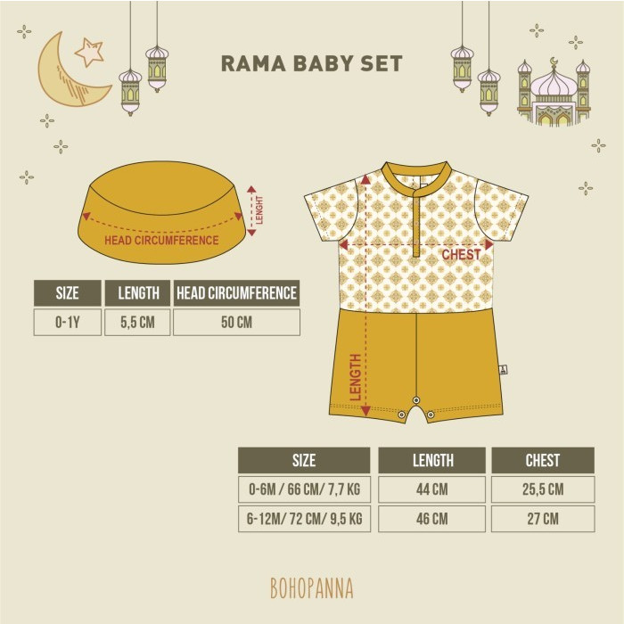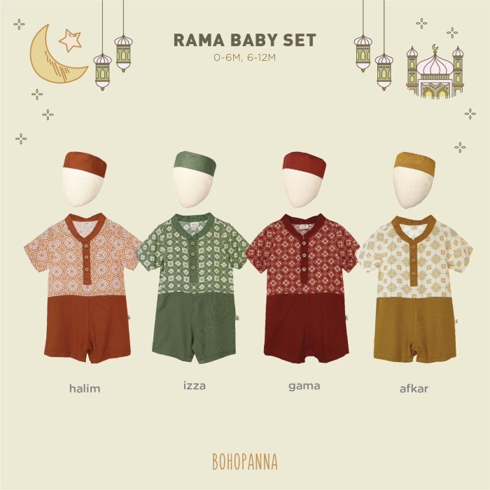 Bohopanna - Rama Baby Set / Koleksi Ramadhan Raya Lebaran Baju Koko Bayi hadir untuk menemani Mommy & Daddy dalam merayakan momen spesial di bulan suci Ramadhan dan Hari Raya Idul Fitri.