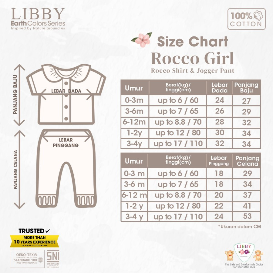 Terinspirasi dari alam sekitar, Libby mengeluarkan series earth colors dalam koleksi terbarunya. Stelan baju kancing lengan pendek dan celana panjang untuk Bayi dan anak perempuan usia Newborn hingga anak usia 2thn.