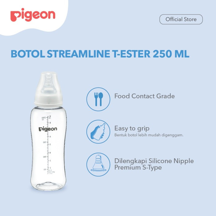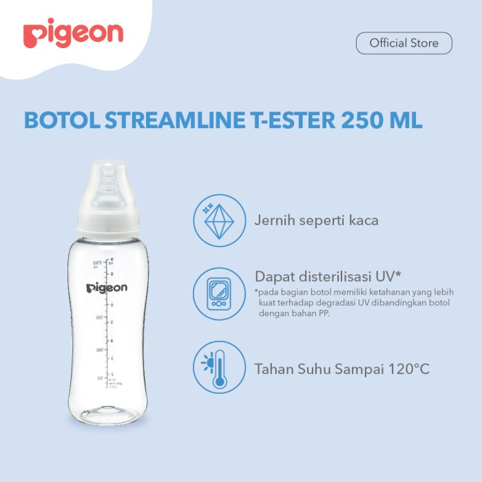 . Botol T-Ester dilengkapi dengan dot Peristaltic Slim Neck ukuran M untuk bayi usia 4