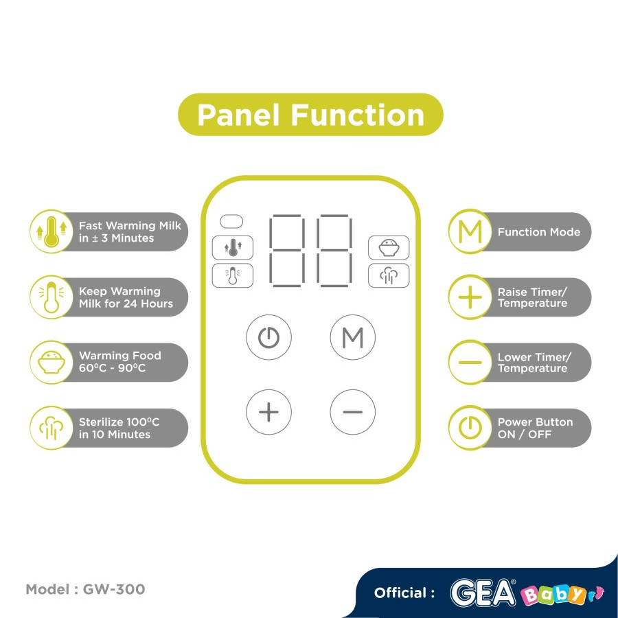 GEA Baby smart multifunction bottle warmer & sterilizer (GW -300) merupakan produk untuk menghangatkan asi, makanan serta mensterilisasi dengan uap