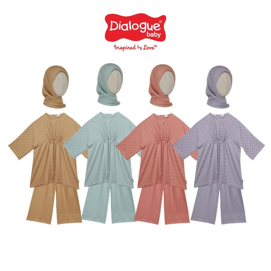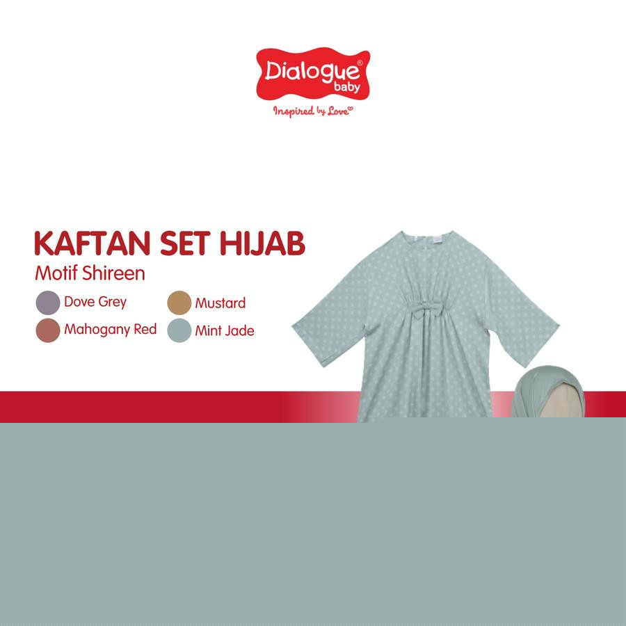 - Desain berupa kaftan motif dengan aksen kerut dan pita serta tambahan hijab instant untuk melengkapi outfit ramadhan buah hati.