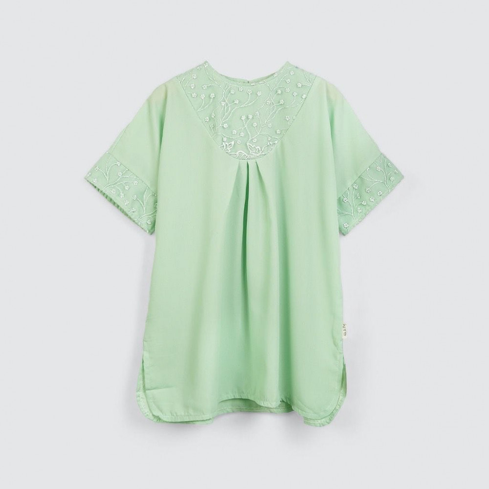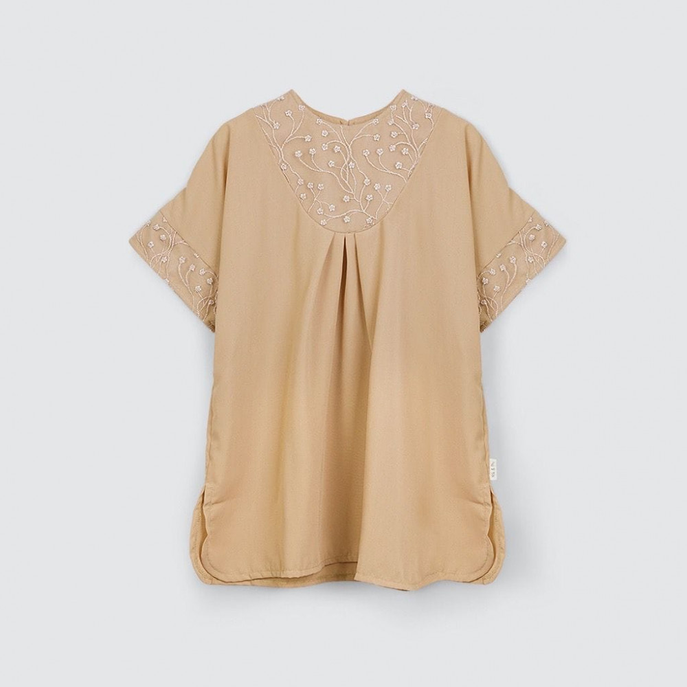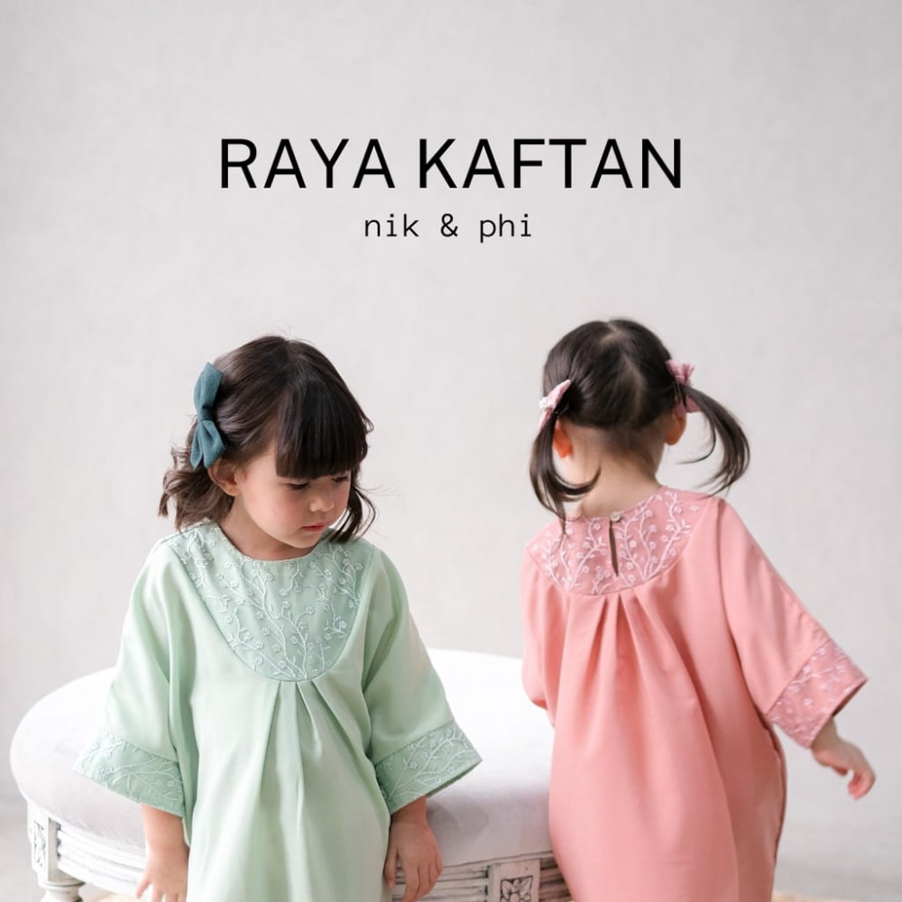 Kaftan panjang anak dengan bahan halus dan look yang mewah.