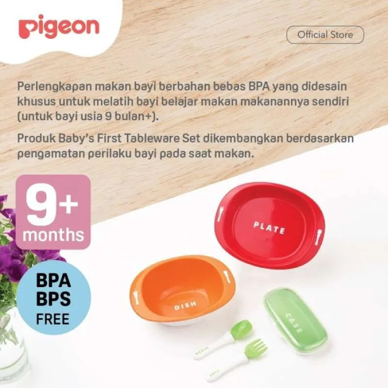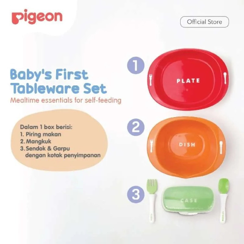 Perlengkapan makan bayi berbahan bebas BPA yang di desain khusus untuk melatih bayi belajar makan makanannya sendiri (untuk bayi usia 9 bulan+). Produk First Tableware Set dikembangkan berdasarkan pengamatan perilaku bayi pada saat makan. Dalam 1 box berisi :