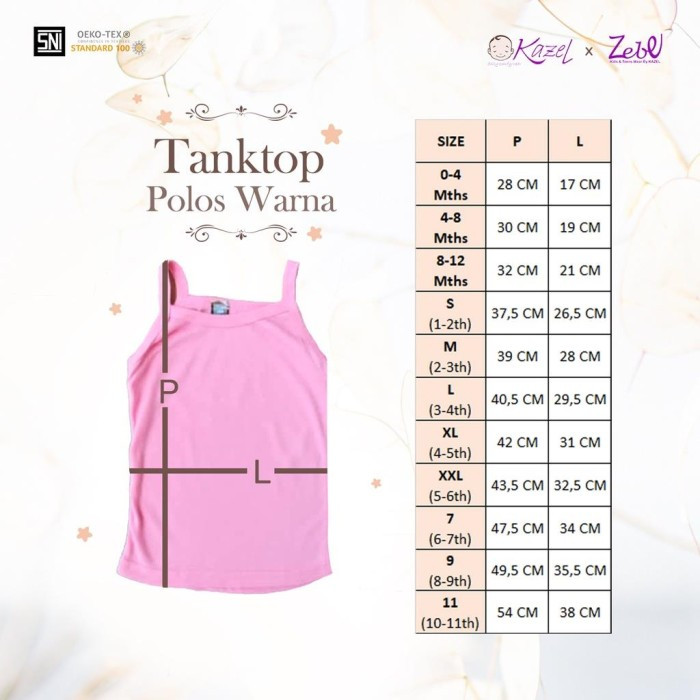 Kazel kembali hadir untuk koleksi Tanktop buat kesayangan Bunda. Bisa dipakai buat sehari-hari ataupun sebagai dalaman. Dibuat dengan bahan katun rib yang adem dan nyaman.