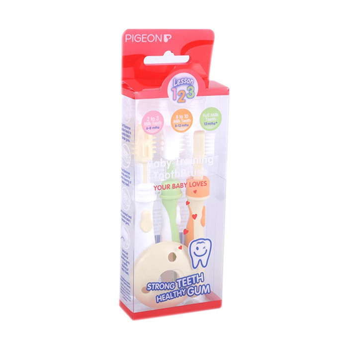PIGEON Training Toothbrush Set / Paket Sikat Gigi Bayi Sikat Gigi Yang Dirancang Khusus Mengikuti Pertumbuhan Gigi Bayu Dan Digunakan Untuk Melatih Bayi Belajar Menjaga Kesehatan Gigi.