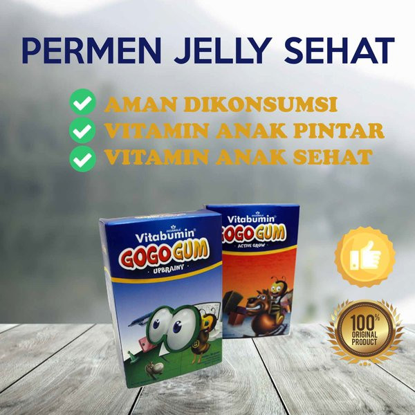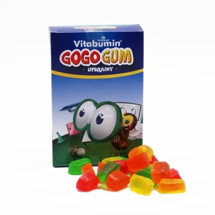 Vitabumin Gogo Gum adalah permen gummy (lunak) yang yummy dan sehat karena mengandung bahan - bahan alami yang sangat baik untuk daya tahan, tumbuh kembang, serta kecerdasan otak. Vitabumin Gogo Gum hadir dengan 2 Variasi yaitu Gogo Gum Up Brainy dan Gogo Gum Active Grow. Kandungan dan manfaat Gogo Gum :