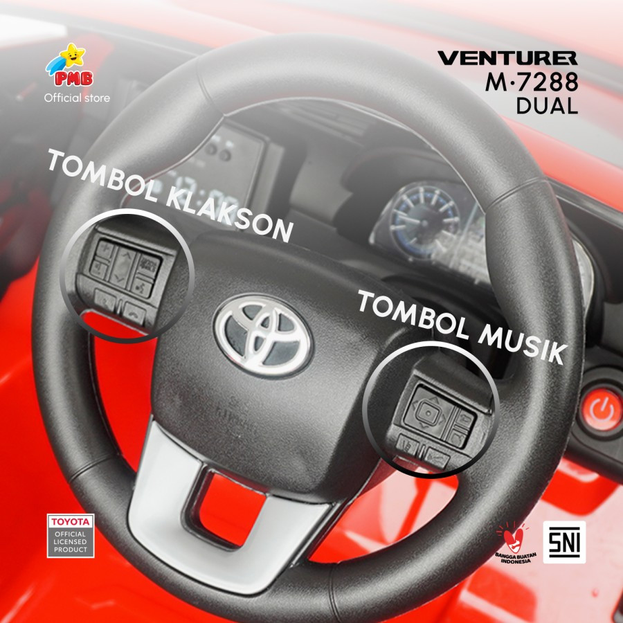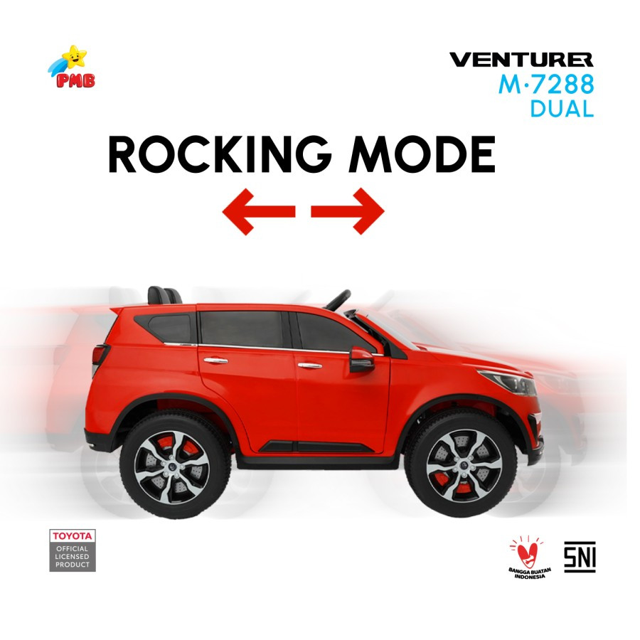 Mobil aki tipe M7288DUAL - Toyota Innova Venturer. Dibuat dari material plastik berkualitas yang aman untuk dimainkan oleh anak-anak. Dengan design terbaru yang dilengkapi dengan fitur : Dibuat dari material plastik berkualitas yang aman untuk dimainkan oleh anak-anak.
