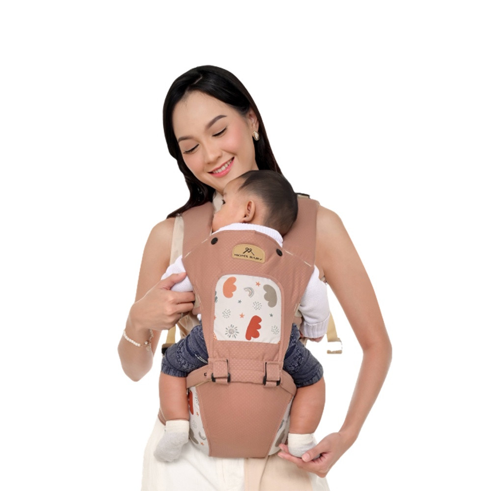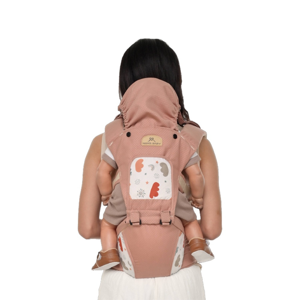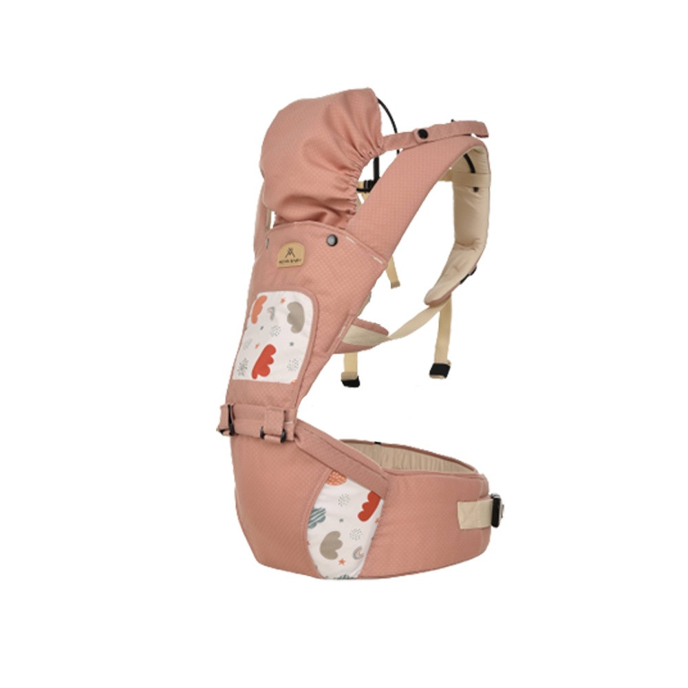 - Hipseat ini dilengkapi dengan topi sehingga bayi terlindung dari sinar matahari dan dapat dilepas saat tidak digunakan.