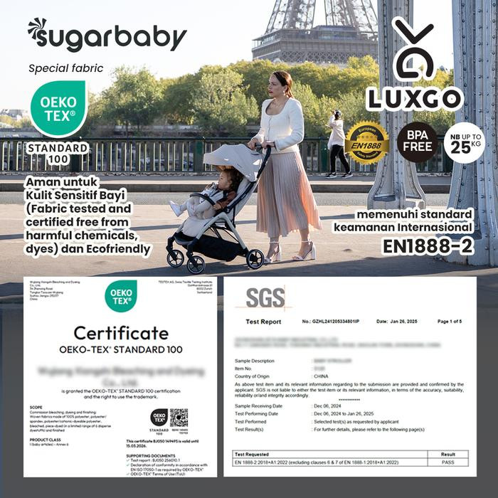 Hadir dengan cushion eksklusif berbahan spesial Oeko Tex Standard 100 dan teknologi Auto Fold Single-Handedly membuat produk ini mudah dibuka dan dipasang dengan cepat. Bobotnya yang ringan hanya 7.8 kg dengan ukuran compact ‘cabin size’ dan dilengkapi tas, juga menjadi nilai tambah karena produk ini dapat dengan mudah dibawa dan disimpan di bagasi mobil, kereta atau pesawat. Soal keamanan nggak perlu diragukan karena sudah memiliki sertifikasi Standar Keamanan Eropa EN 1888 dan disertai sabuk pengaman 5 titik yang menjaga si kecil duduk dengan lebih aman saat bepergian. Backrest mekanik nya dapat diatur 3 posisi, serta dilengkapi kanopi anti UV UPF 50+ & waterproof untuk melindungi si Kecil dari panas matahari. Moms juga bisa mengecek si Kecil melalui lubang jendela di bagian atas kanopi atau jendela besar di belakang kursi yang juga berfungsi sebagai ventilasi ekstra.