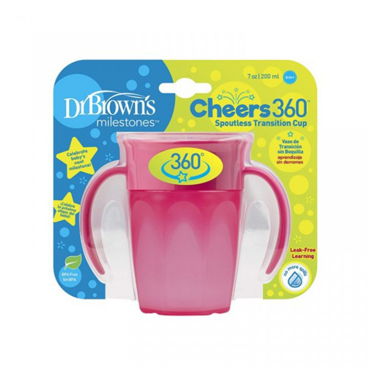 Dr. Brown’s Cheers360 Cup didesain secara khusus menyerupai gelas dewasa sehingga bayi dapat minum dari sisi manapun layaknya minum melalui gelas. Cukup tunjukkan bagaimana cara minum melalui gelas, dan biarkan bayi Anda bereksplorasi dan belajar dengan sendirinya.