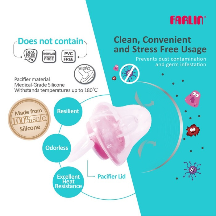 Bisa dikombinasikan dengan pacifier clip atau disimpan di pacifier storage box Farlin.