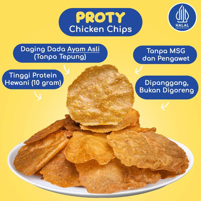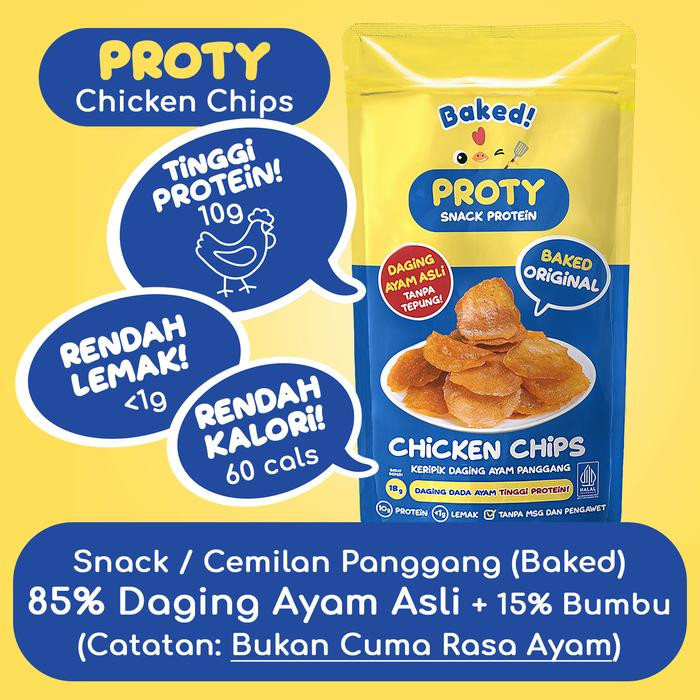 PROTY Baked (Panggang) Camilan Protein Sehat (Dewasa, Remaja, Anak, Diet, Gym) - Chicken Chips Baked Original (1 pcs) - Keripik Daging Ayam Panggang - 18 gr.