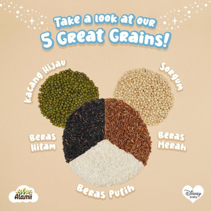- Terbuat dari 5 Biji-bijian Hebat: Sorgum, Beras Hitam, Beras Merah, Beras Putih, Kacang Hijau