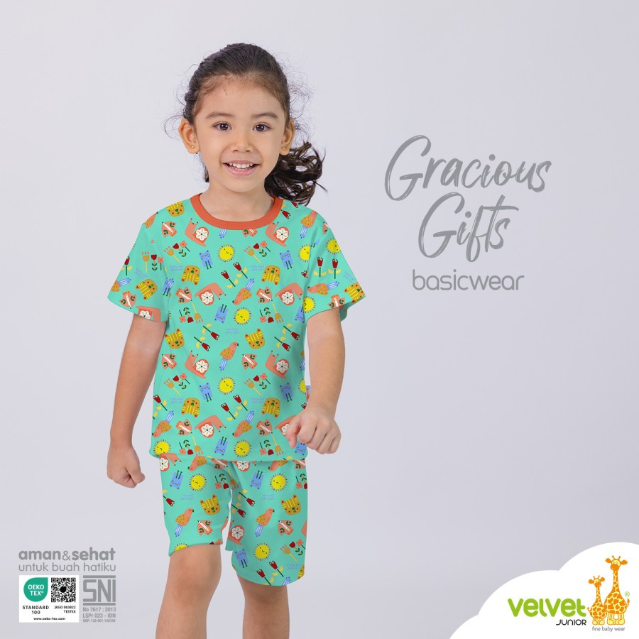 Type : Setelan Pendek Kancing Pundak + Celana Pendek Segiempat