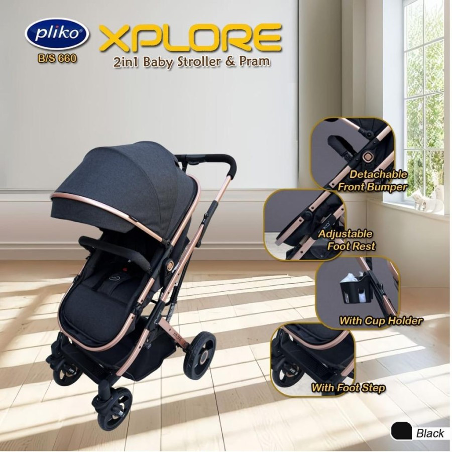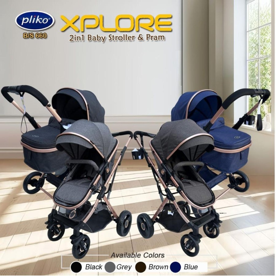 Pliko Xplore Explore BS-660, solusi all-in-one untuk kebutuhan mobilitas Anda dan si kecil. Dengan desain yang dapat digunakan sebagai stroller atau pram, produk ini dilengkapi dengan fitur-fitur unggulan: