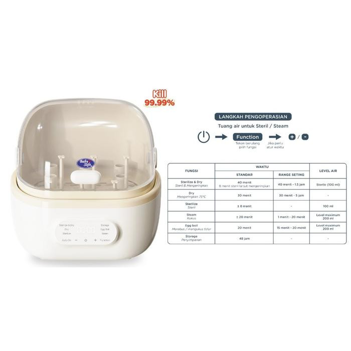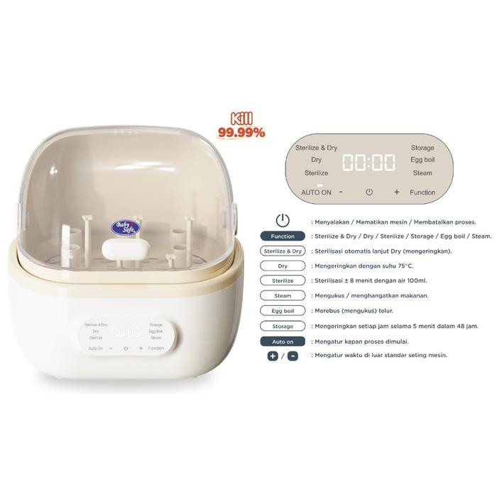 Jaga kebersihan perlengkapan si kecil dengan Baby Safe Sterilize & Dry 6 in 1 (LBD02). Didesain dengan teknologi canggih, alat ini mampu mensterilkan dan mengeringkan botol susu serta perlengkapan bayi lainnya secara cepat, higienis, dan efisien.