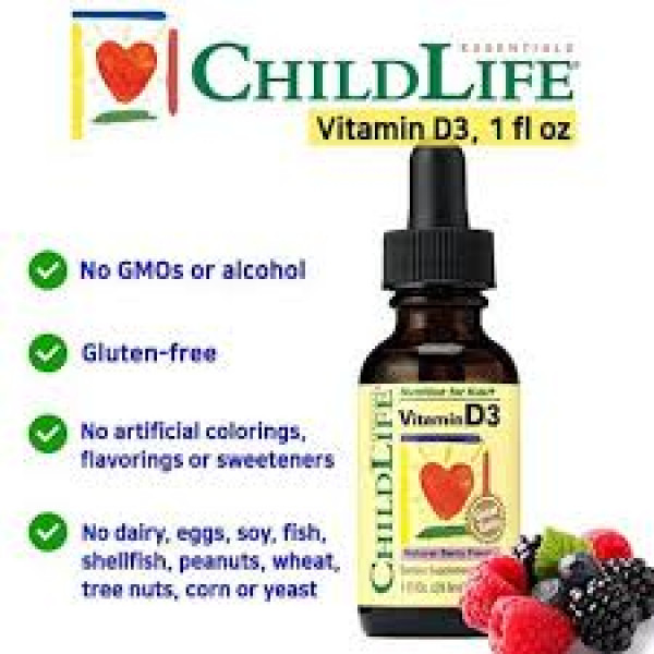 ChildLife Vitamin D3 is made especially for infants and children. Alcohol free, natural ingredients, optimum absorption and great tasting natural berry flavor.