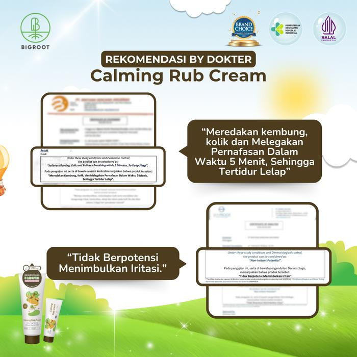 1. Gunakan Bigroot Calming Rub Cream saat bayi mengalami gangguan kembung kolik, hidung tersumbat dan batuk pilek.