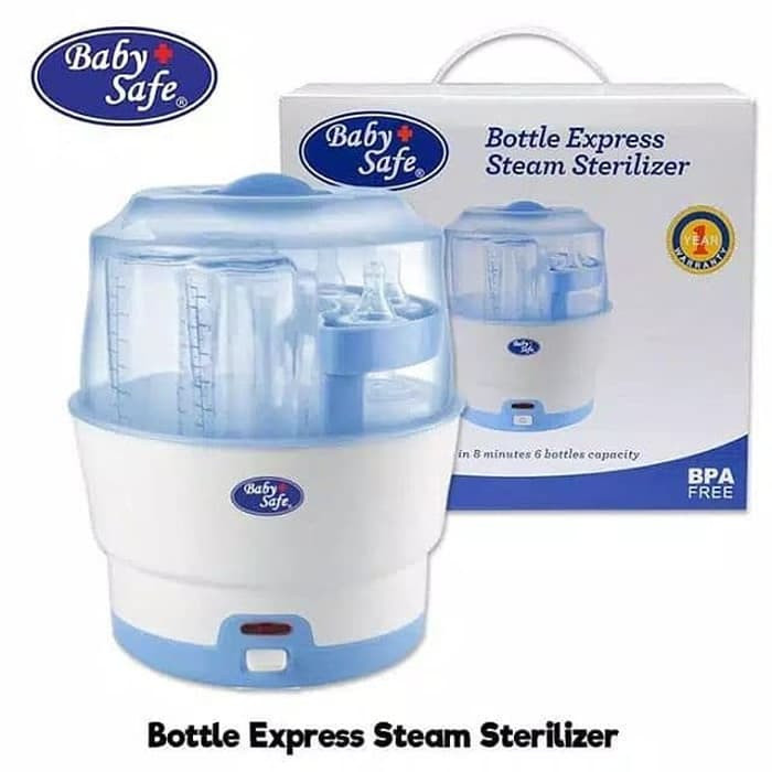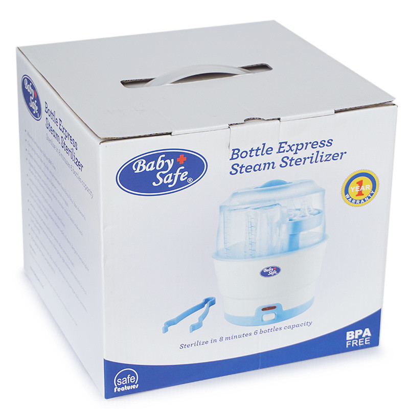 BabySafe 6-Bottles Express Steam Sterilizer adalah mesin khusus sterilizer yang bekerja dengan sangat cepat dan dapat membasmi semua jenis bakteri rumah tangga. Dengan adanya lampu indikator dan Thermostatic Control (pengontrol suhu), alat ini membantu menjamin proses sterilisasi agar tetap terjaga dalam suhu yang sesuai standar. Mesin pengontrol suhu akan bekerja otomotis dimana mesin akan mati dengan sendirinya bila terjadi overheat (pemanasan berlebih) walaupun prosesnya belum selesai. Oleh karena itu, para ibu tidak perlu ragu lagi akan kebersihan dan keamanan dari botol susu dan perlengkapan makan yang akan digunakan oleh si kecil.