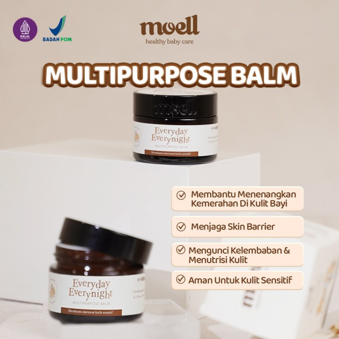 Multipurpose Balm merupakan balm dengan full natural organic 3 in 1 Balm di Indonesia yang diformulasikan khusus untuk merawat kulit bayi dan aman untuk kulit sensitif. Diperkaya 3 essential oil, Organic Shea Butter dan Bisabolol untuk melembapkan, menutrisi, menenangkan, dan memberi kenyamanan pada kulit bayi