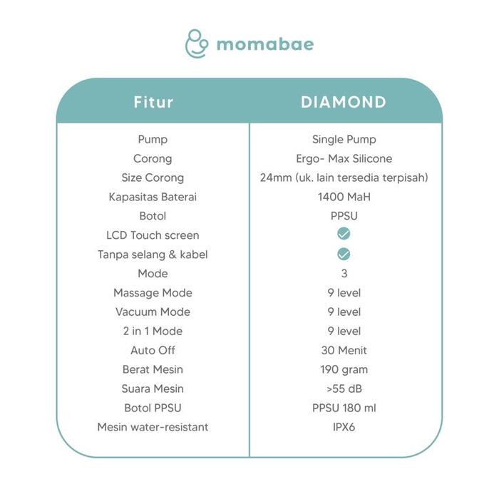 MOMABAE – DIAMOND Pompa ASI Elektrik Integrated Breast Pump