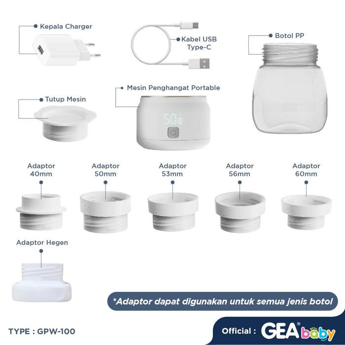 4. Dilengkapi 7 kepala adaptor (kotak, 40, 50, 53, 56, 60mm, tutup) untuk disesuaikan dengan ukuran botol yang dimiliki.