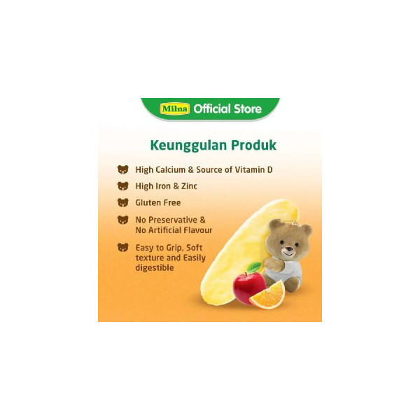 Milna rice crackers mudah digenggam, teksturnya lembut dan cepat lumer dimulut. Terbuat dari beras pilihan. Sumber Vitamin D, tinggi kalsium dan zat besi membantu menambah nutrisi harian keluarga anda termasuk buah hati anda. Berat 20 gram ( 5 sachet x 4 g)