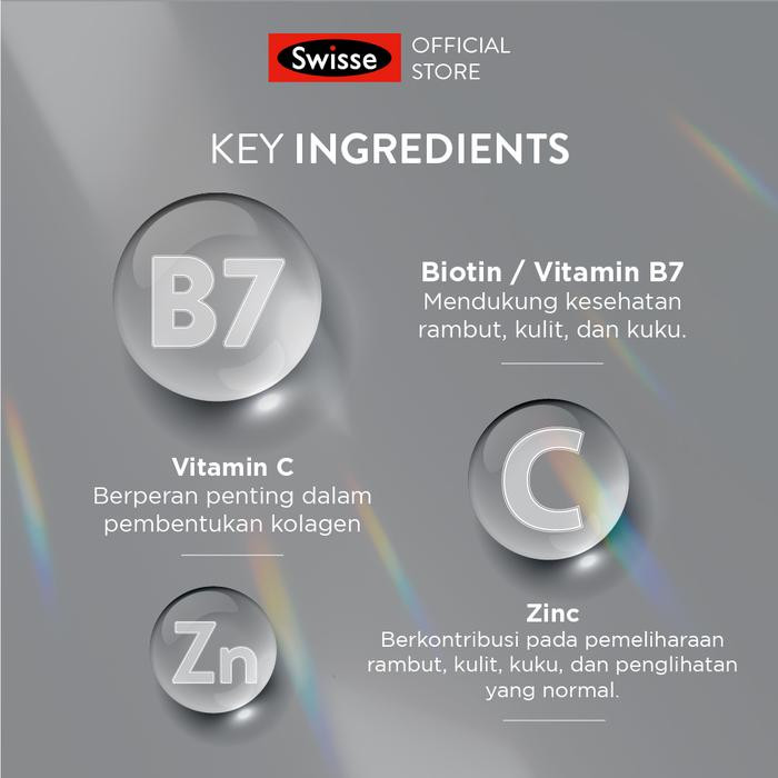 Rambut, Kulit & Kuku : Biotin dan zinc membantu mendukung kesehatan rambut, kulit, dan kuku.