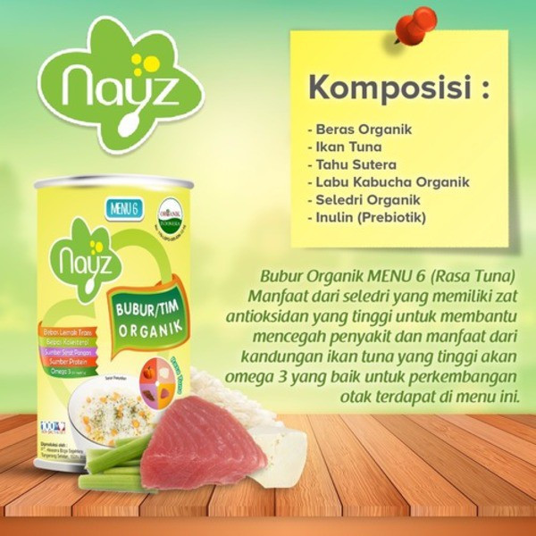 Komposisi : Beras Putih Organik, Ikan Tuna, Seledri, Labu Kabocha, Tahu Sutra
