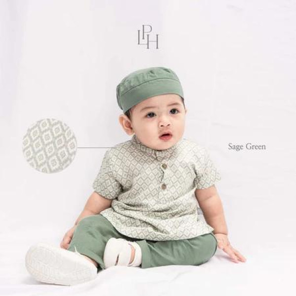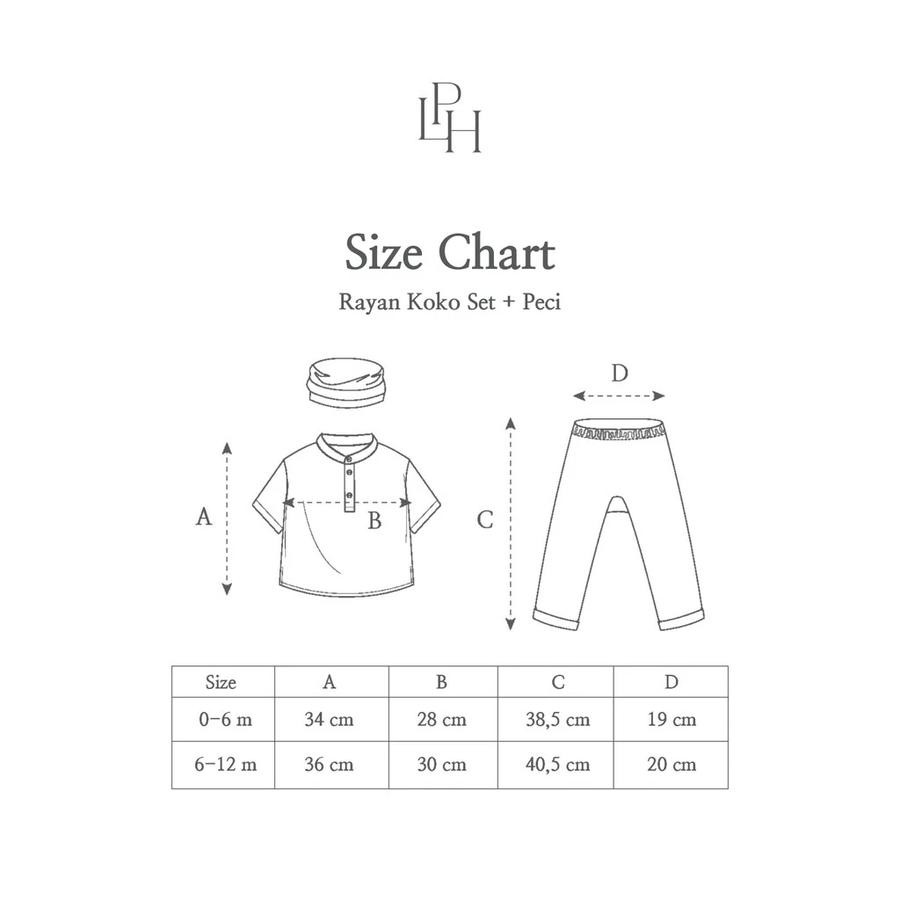 Little Palmerhaus mempersembahkan Baju Lebaran 2025 - Rayan Koko Set + Peci, setelan baju koko yang dirancang khusus untuk bayi usia 0-12 bulan.