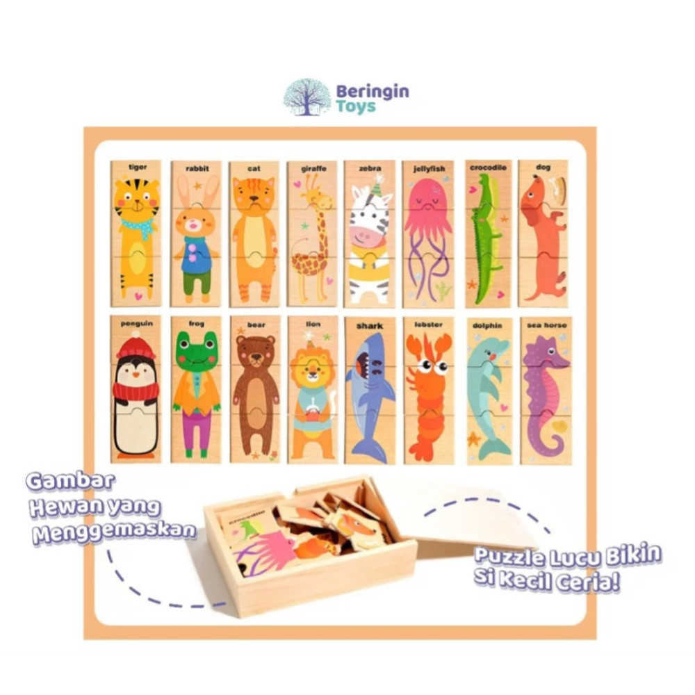 - Mencocokkan gambar hewan: Anak menyatukan dua potongan puzzle menjadi satu gambar utuh