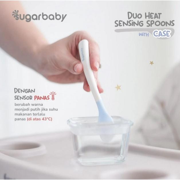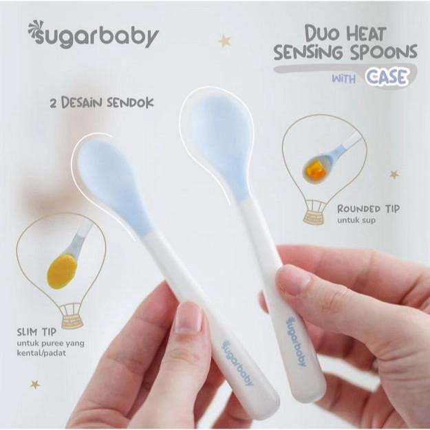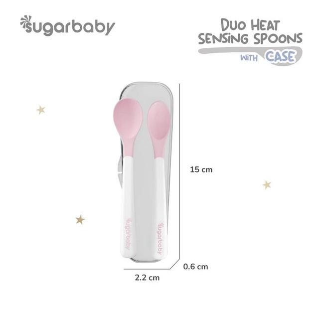 Penggunaan material TPE dan Polypropylene Food Grade dipilih karena aman untuk produk alat makan. Tak hanya itu, Sugarbaby Duo Heat Sensing Spoon with case ini dirancang dengan 2 desain ujung sendok berbeda, terdiri dari sendok dengan ujung ramping untuk mengambil makanan bertekstur lebih padat dan sendok dengan desain ujung bulat untuk mengambil makan bertekstur cair. Juga disertai sensor panas di bagian ujung sendok yang akan berubah menjadi warna putih jika suhu makanan terlalu panas (di atas 43 °C)