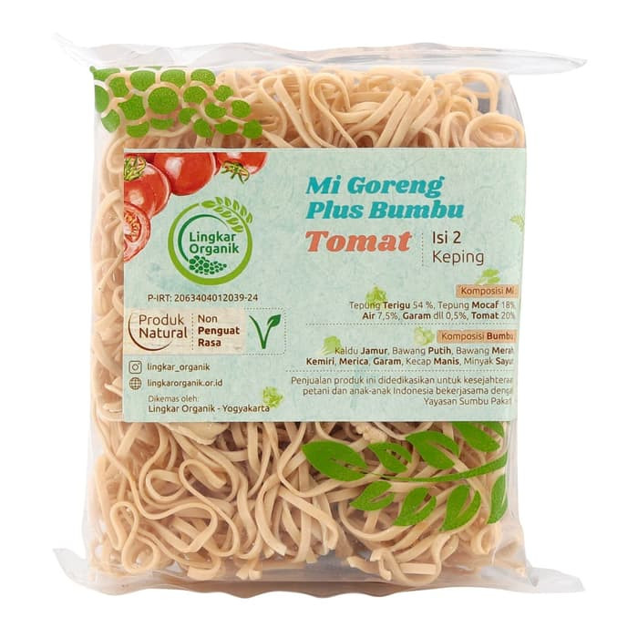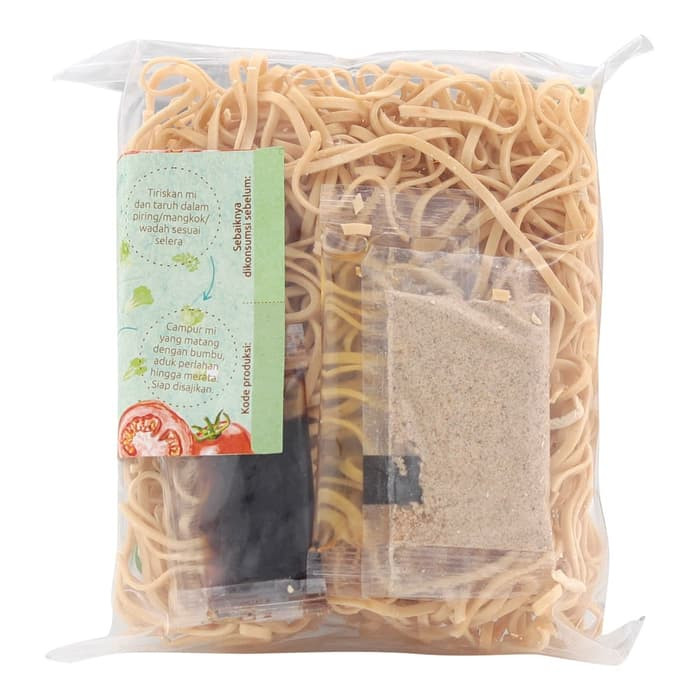 Mie dengan bahan dasar utama tepung mocaf, dengan pewarna alami sayuran organik. Mi goreng ini diproses alami dan natural tanpa pewarna sintetis dan pengawet, dengan dilengkapi bumbu siap saji dari Maseko jamur, kecap Lingkar Organik dan rempah-rempah alami asli pilihan.