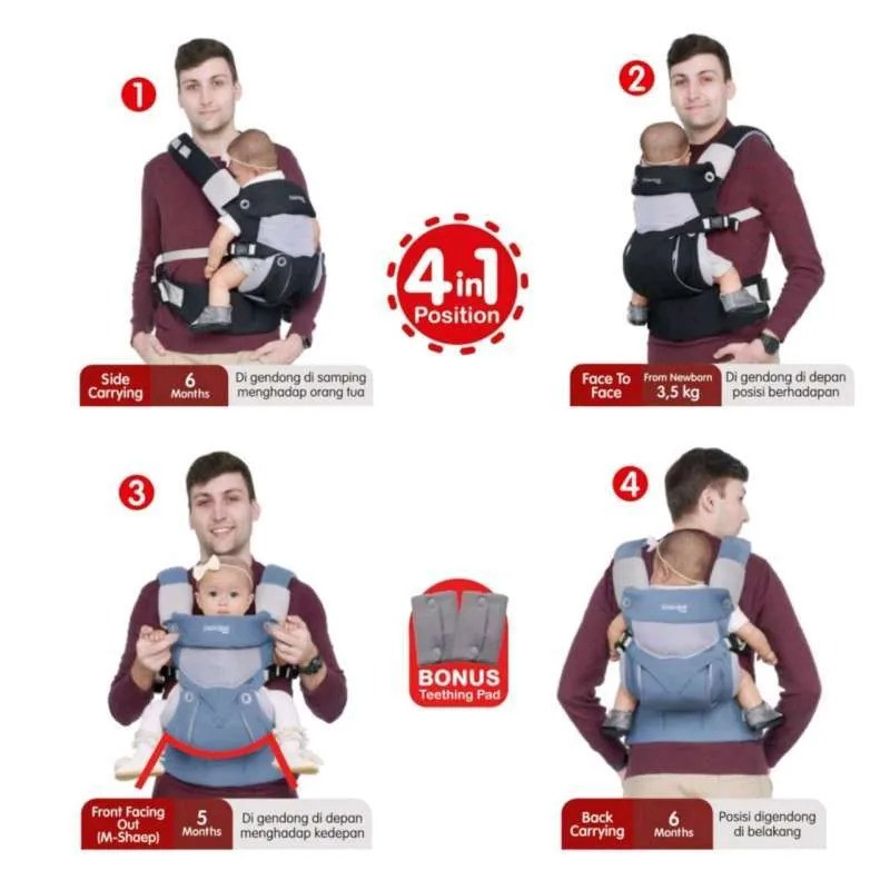 MORU MOTTO GENDONGAN SAMPING M-SHAPE 4 IN 1 BABY ZOO SERIES MMG4013
